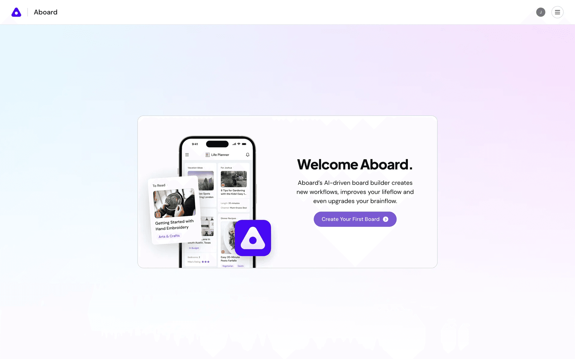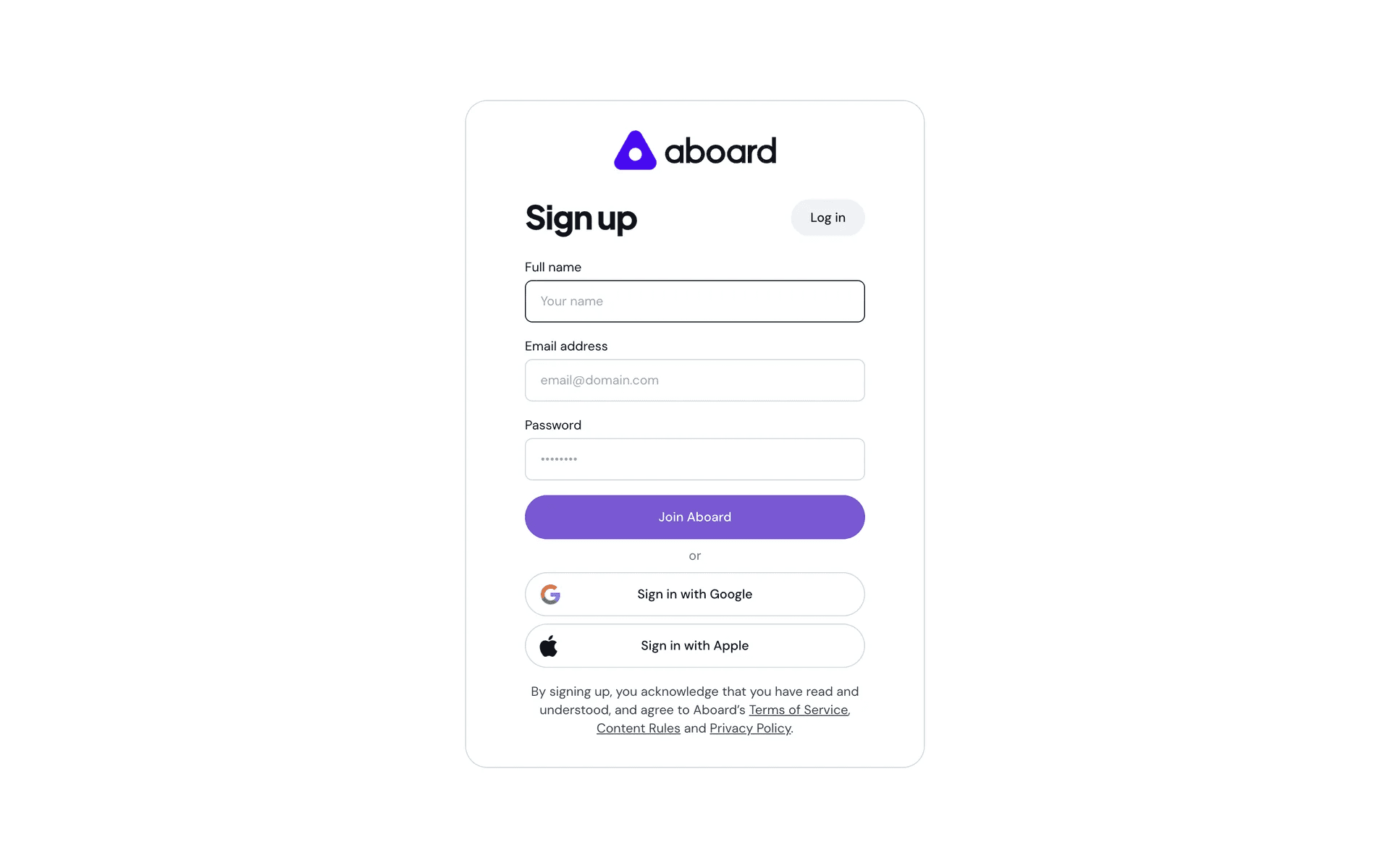 Aboard Holdings LLC helps users build custom business apps accelerated by AI. Its branding and interface designs primarily feature Electric Violet, Green, and White. Here on Mobbin, you can easily copy its colors in Hex, CMYK, RGB, and more.