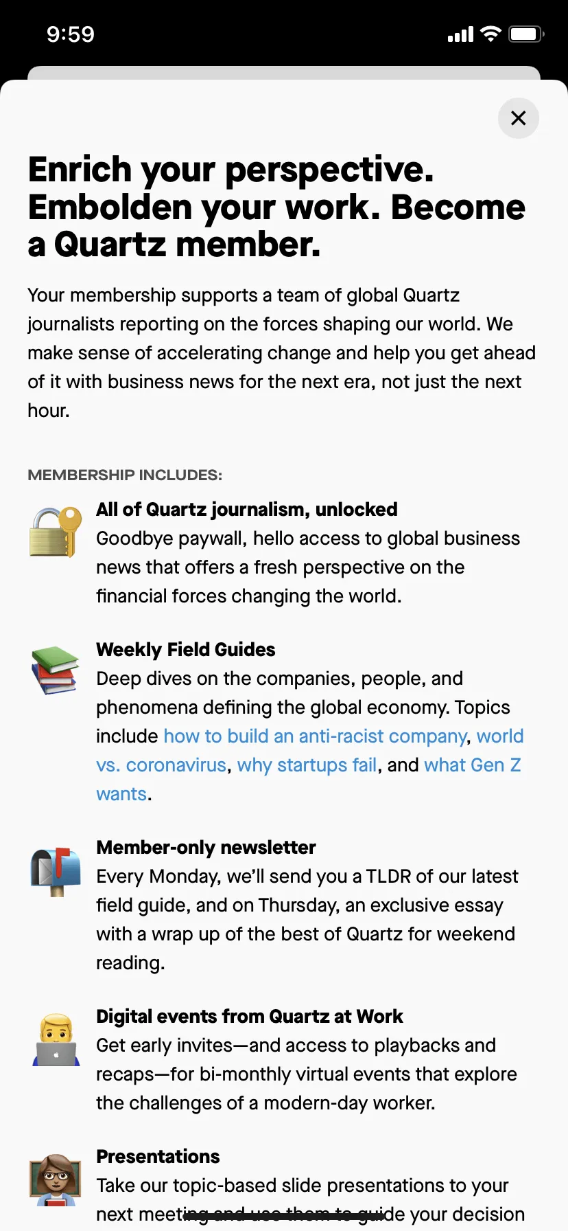 Quartz Media, Inc. is a publisher of business news and analysis. Its branding uses a palette of Black, Periwinkle Gray, and Tory Blue for its interface. You can easily copy these colors in Hex, CMYK, RGB, and other popular formats on this page.