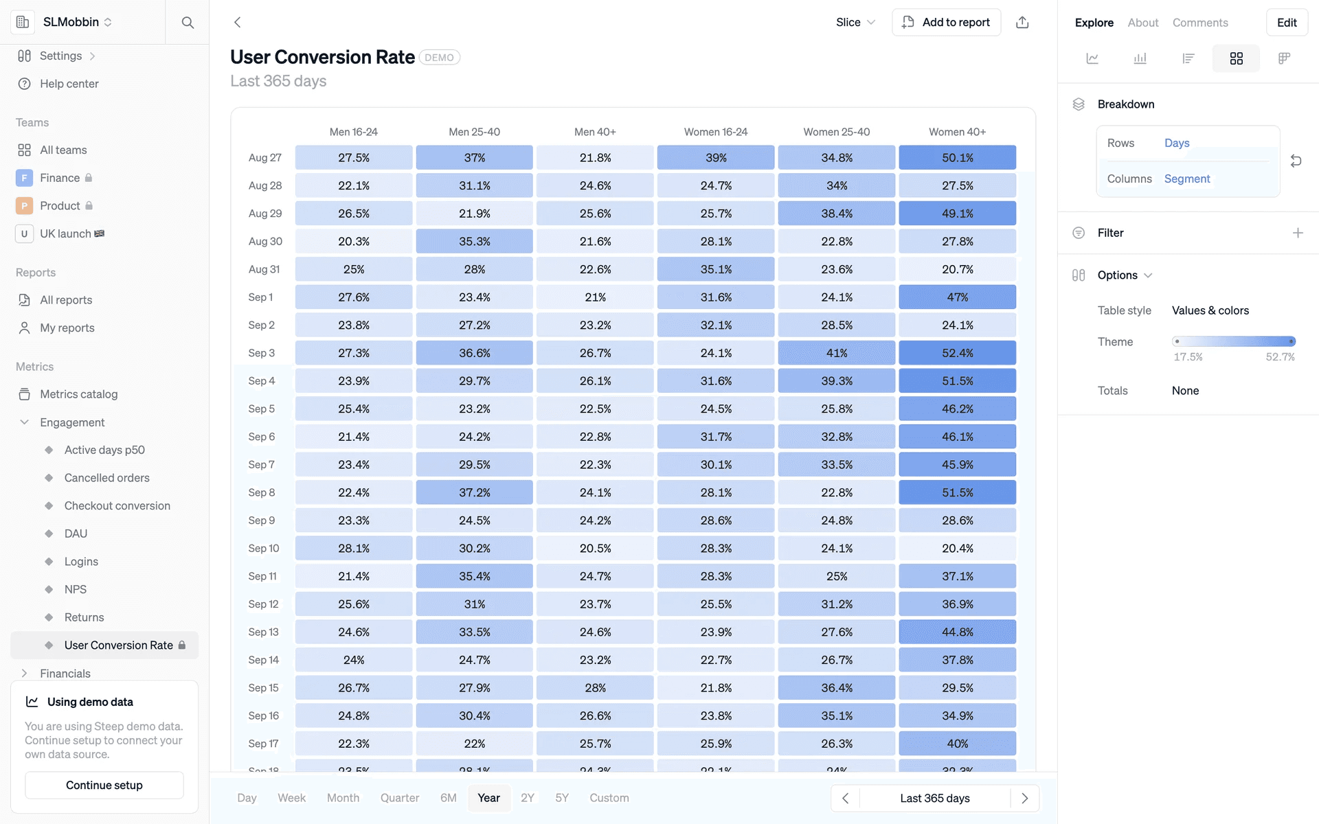 From Steep Analytics AB comes Steep, a modern analytics platform for collaborative data use. Their branding and interface designs use a clean palette of Vista Blue, Ebony, and White. We've made it easy for you to copy these colors in Hex, CMYK, RGB, and other formats.