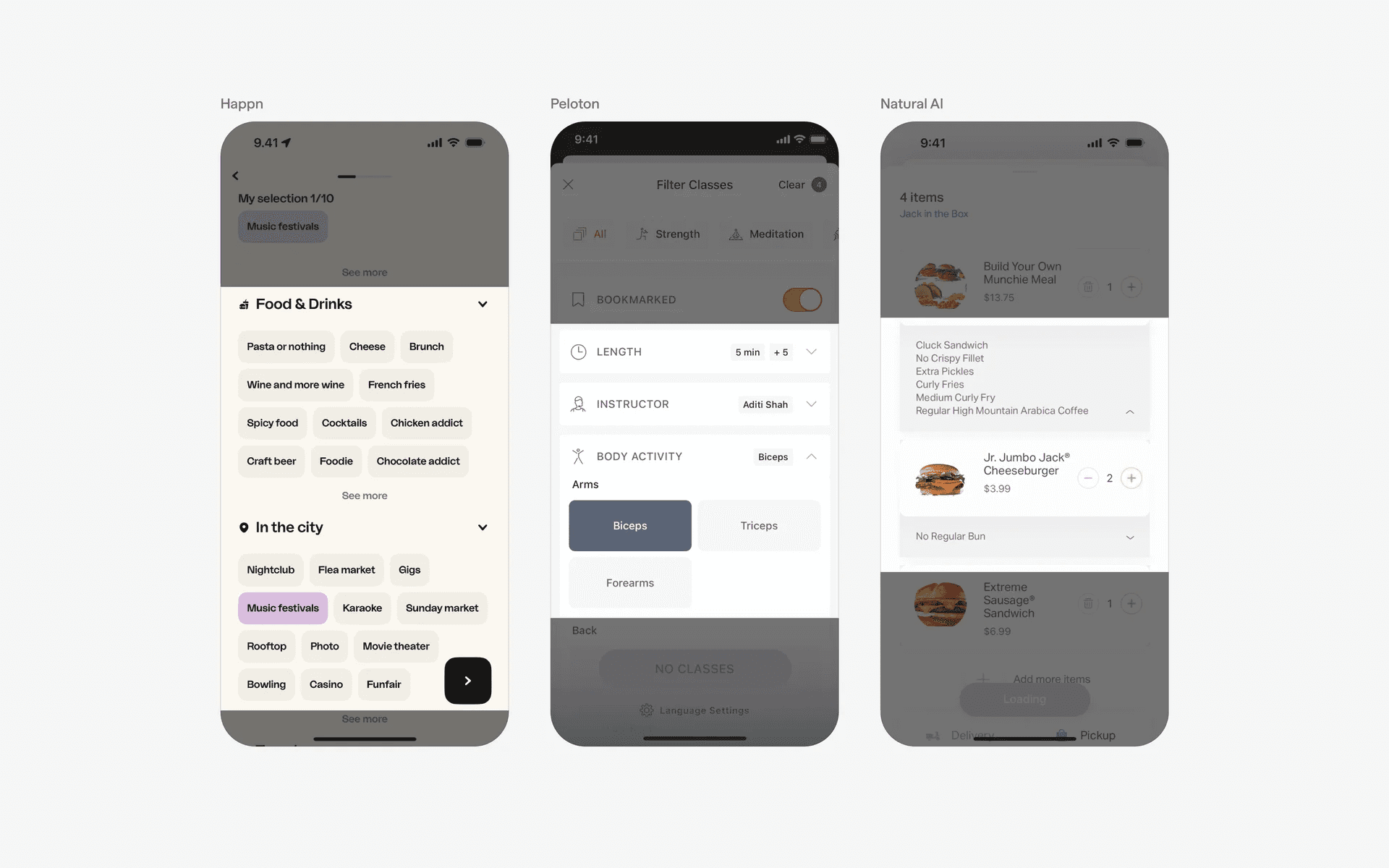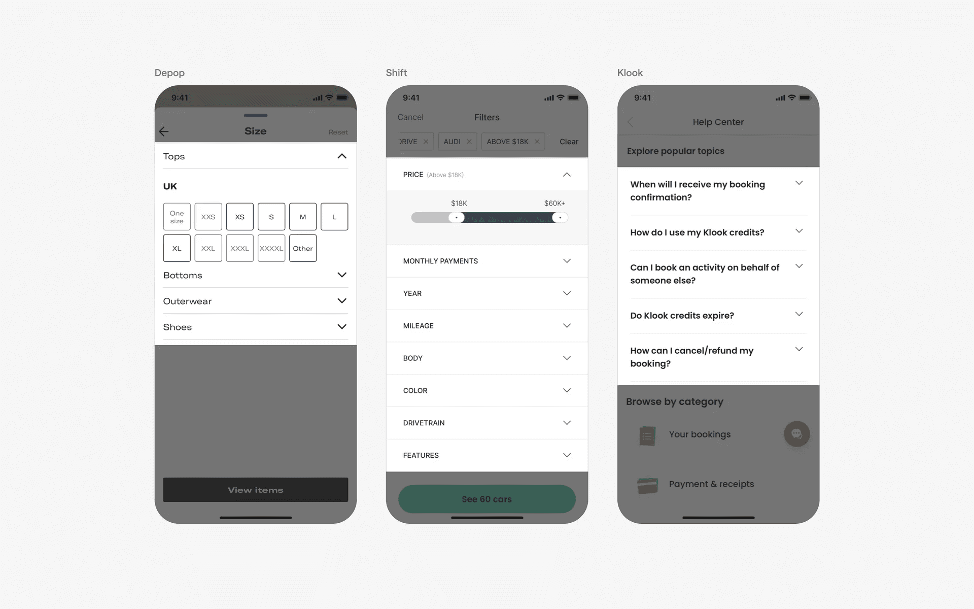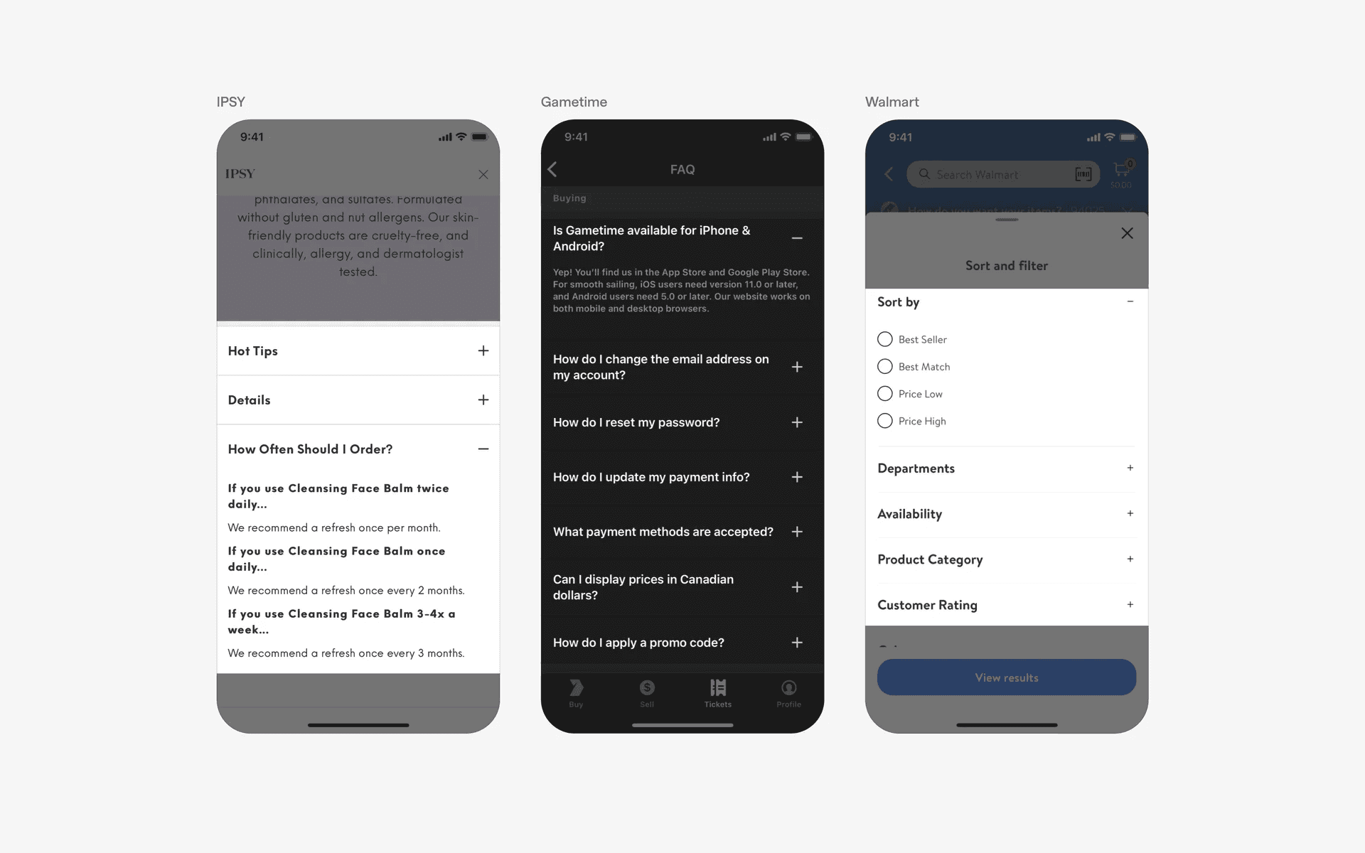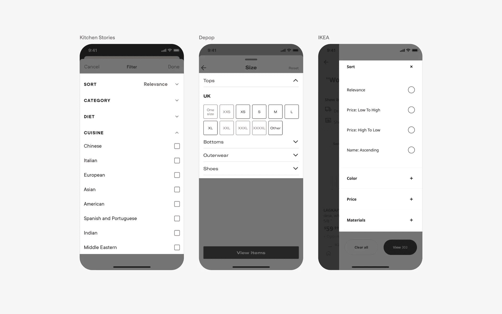 Examples of accordions in filtering & sorting screens
