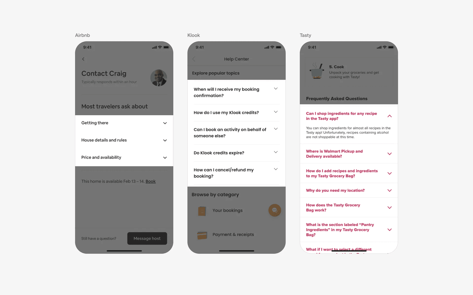Examples of accordions in FAQ page