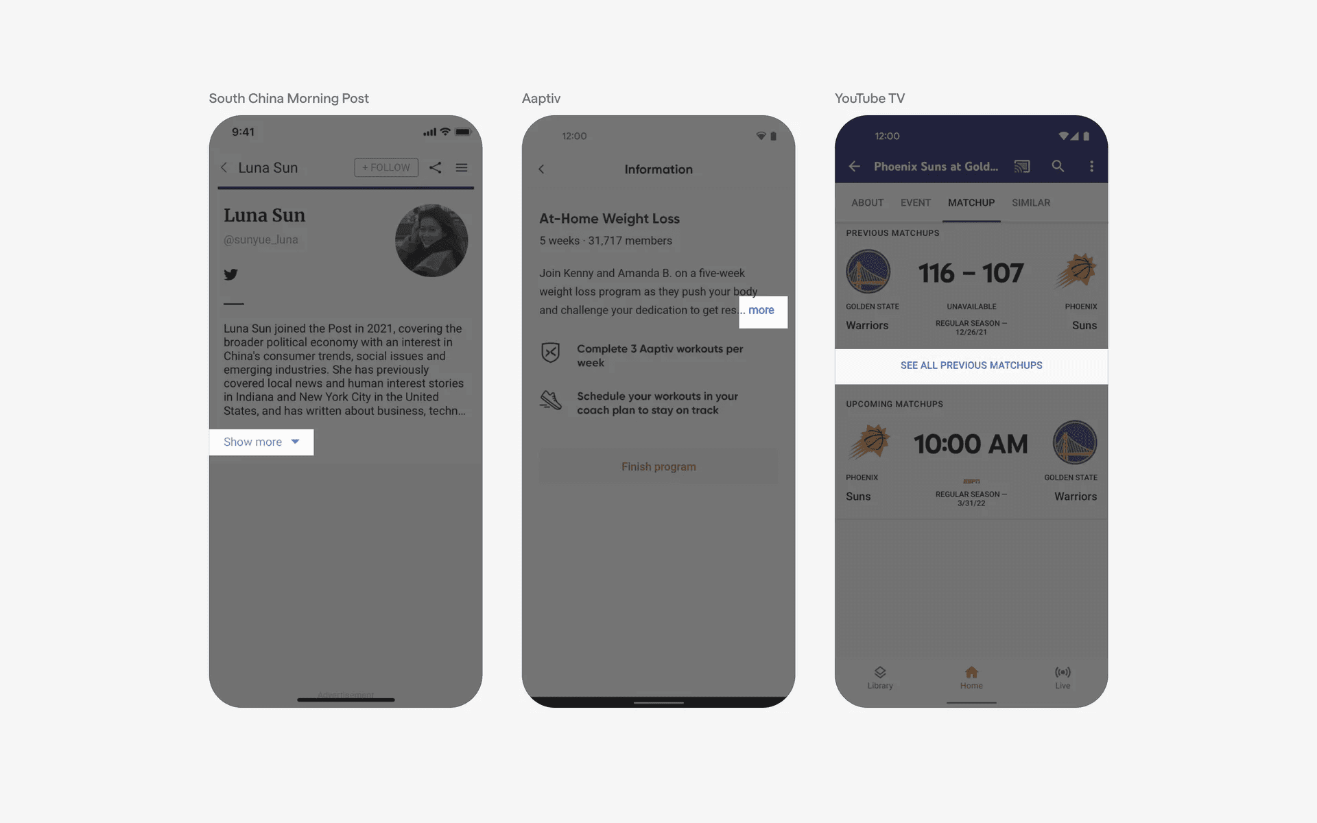 Examples of card accordion UI