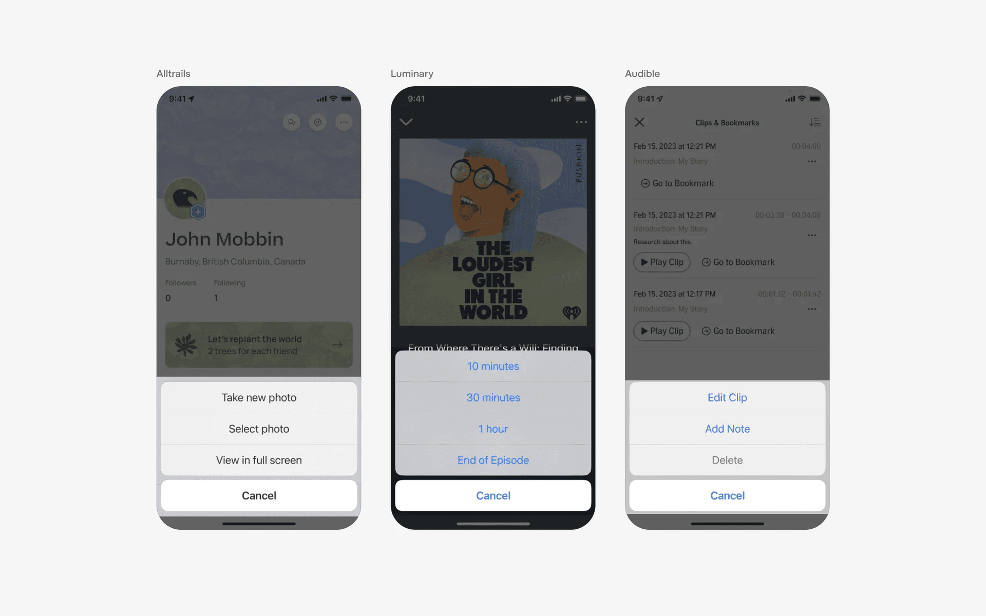 Example of action sheets with no cancel buttons.