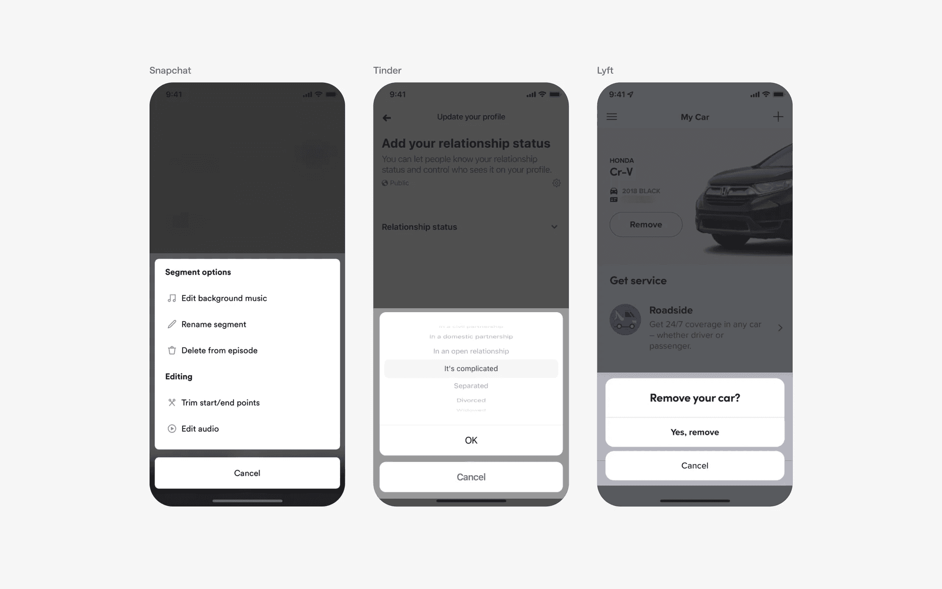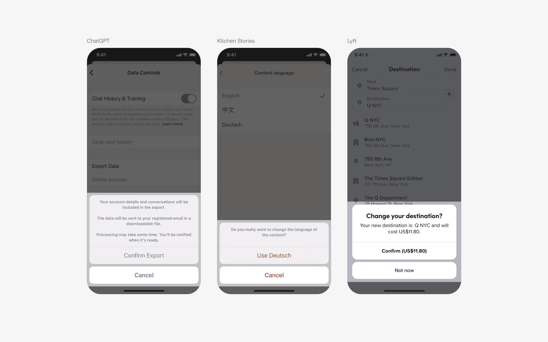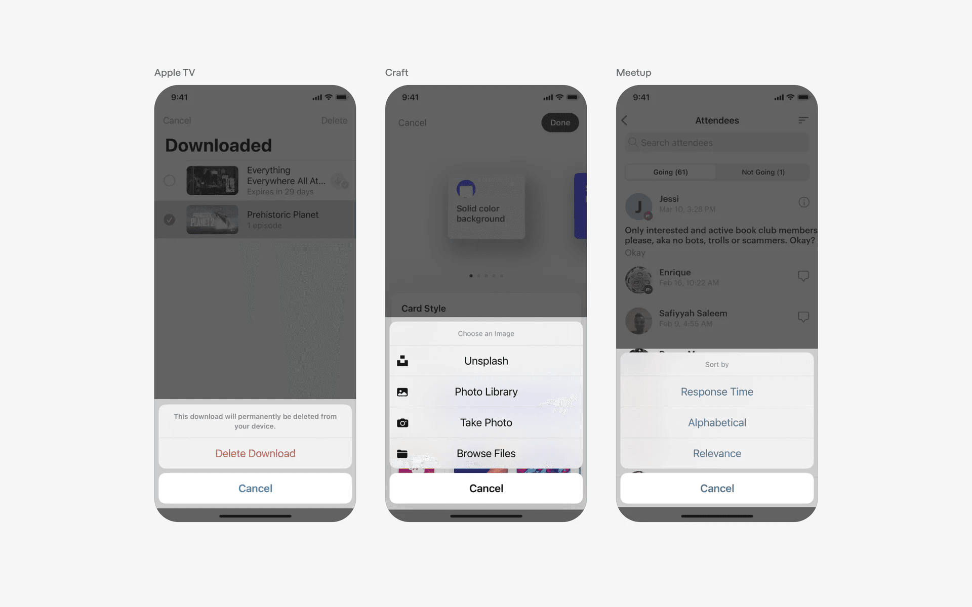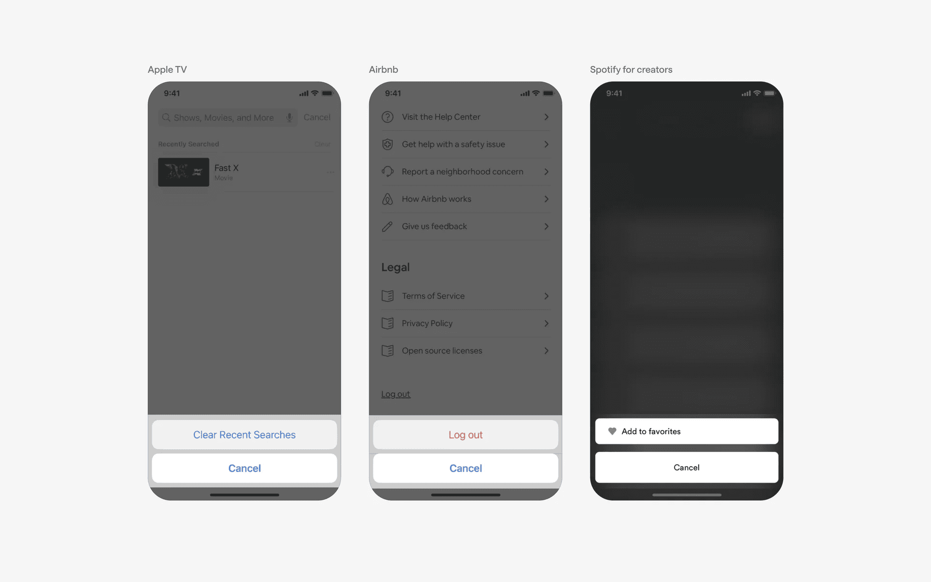 Examples of action sheet confirmation dialogs
