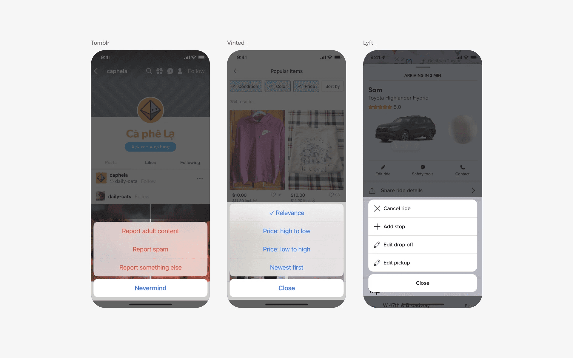 We've observed some apps taking inspiration from that and designing similar non-native action sheet menus.