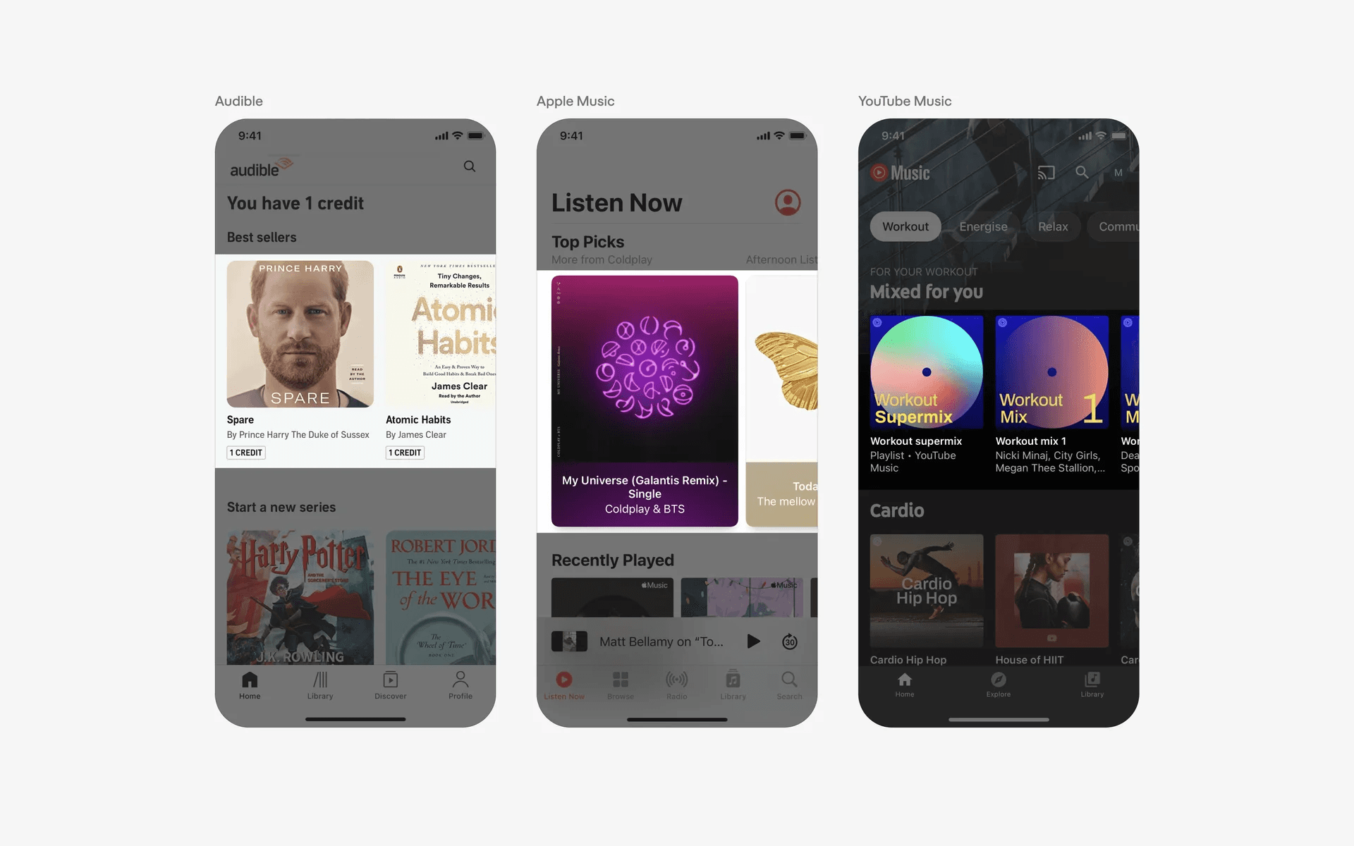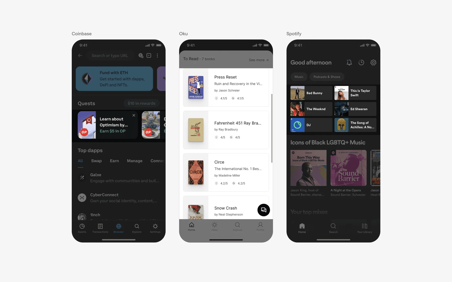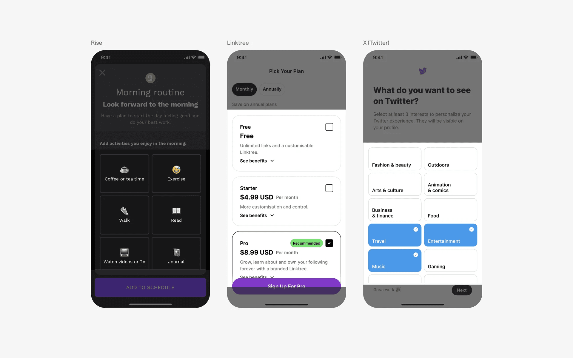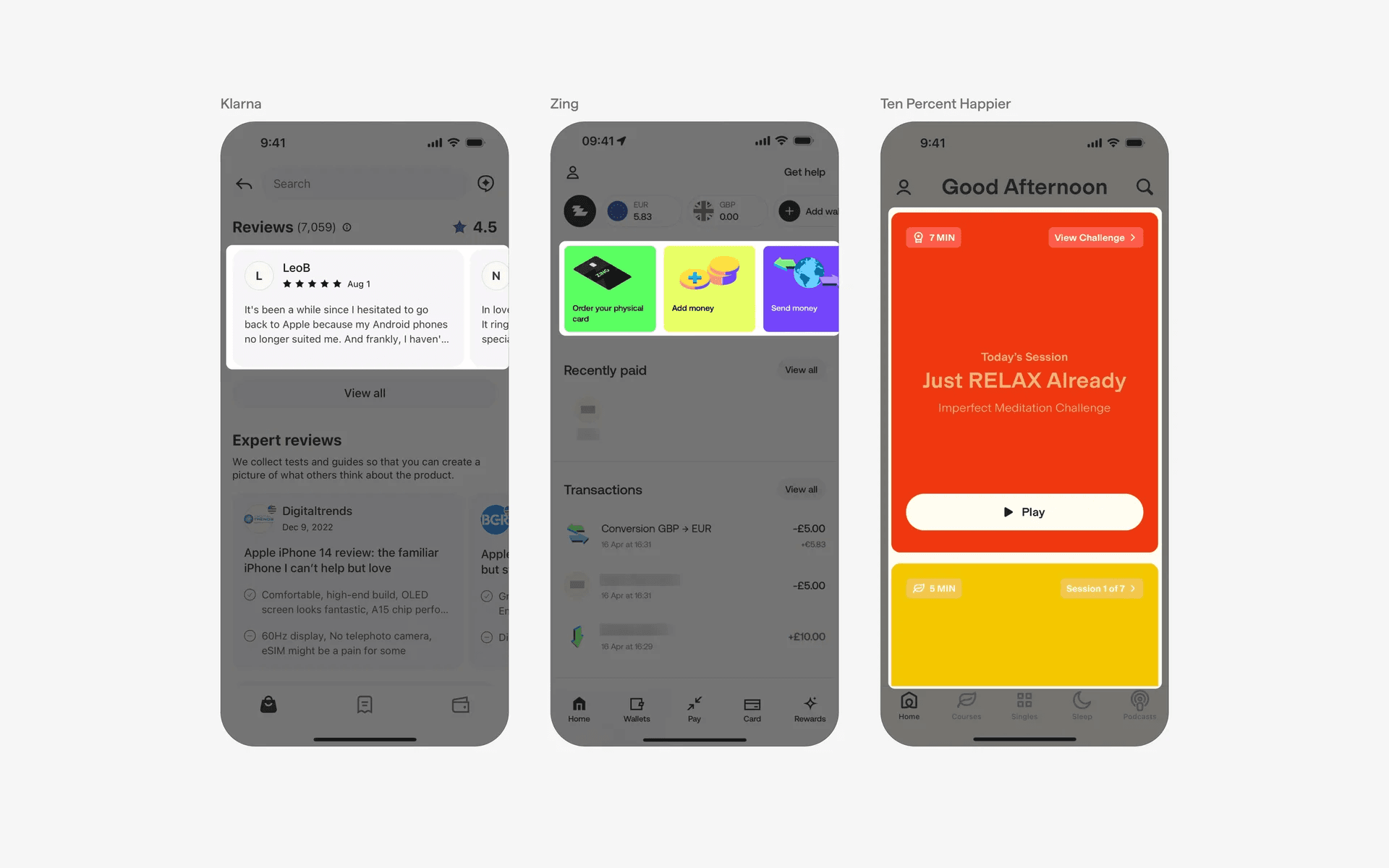 And more examples of a card based layout without buttons. There is less cognitive overload here without overly repetitive buttons.