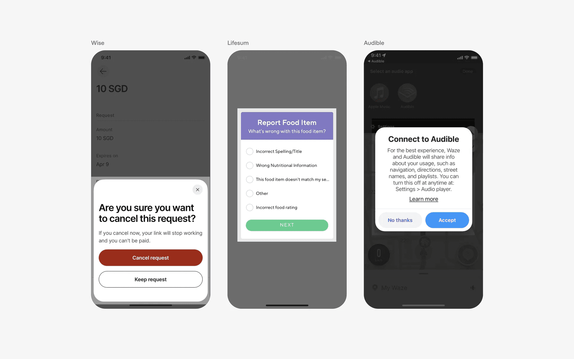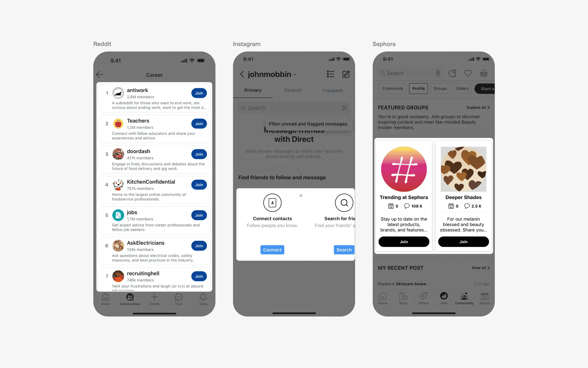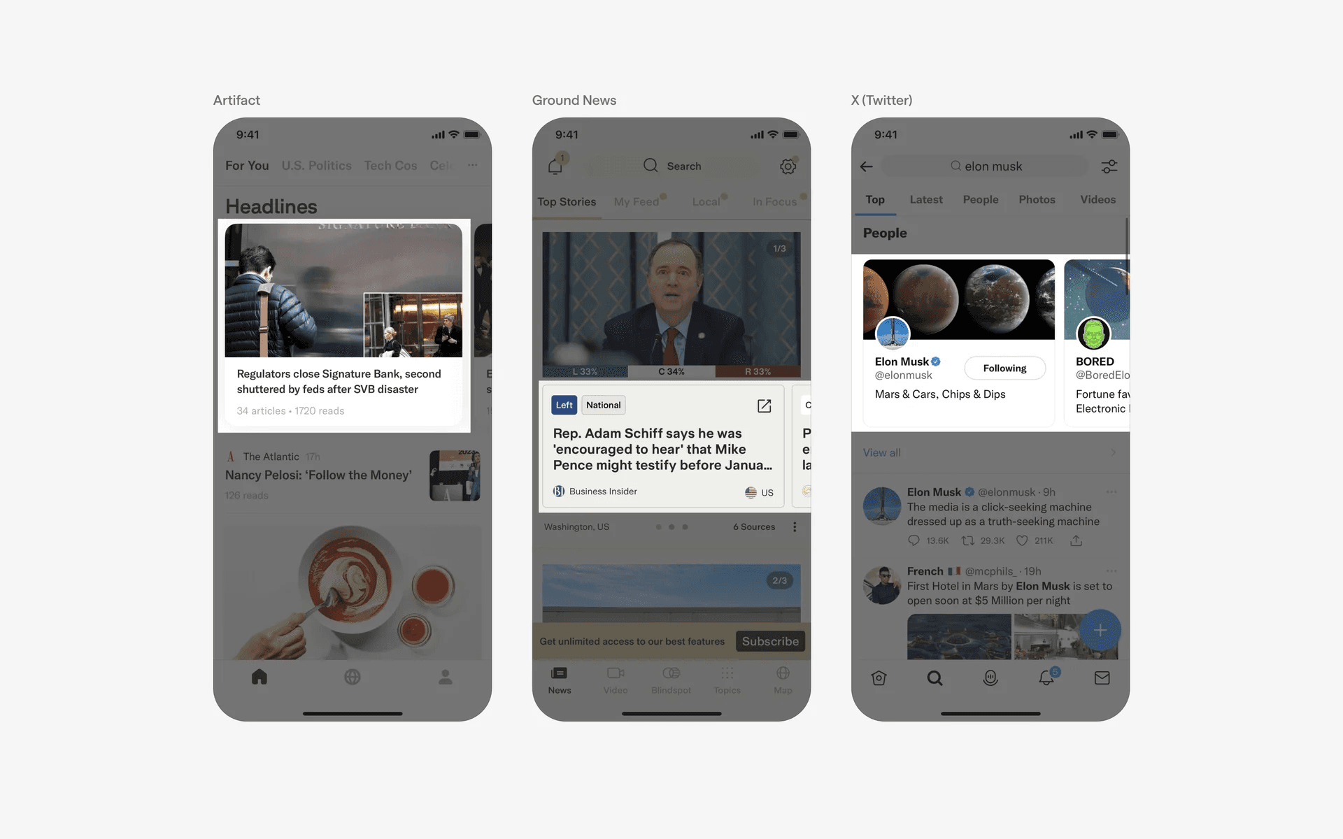 Examples of UI cards in news and social media feeds