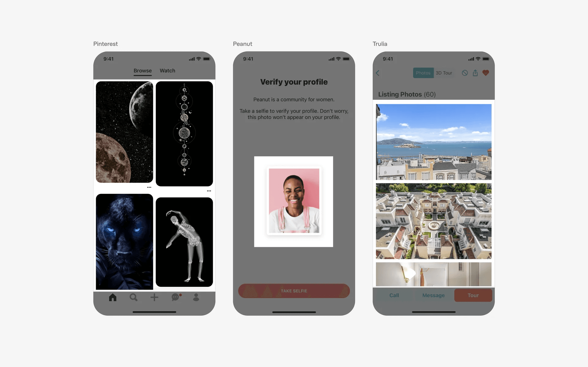Examples of UI cards with filled image containers