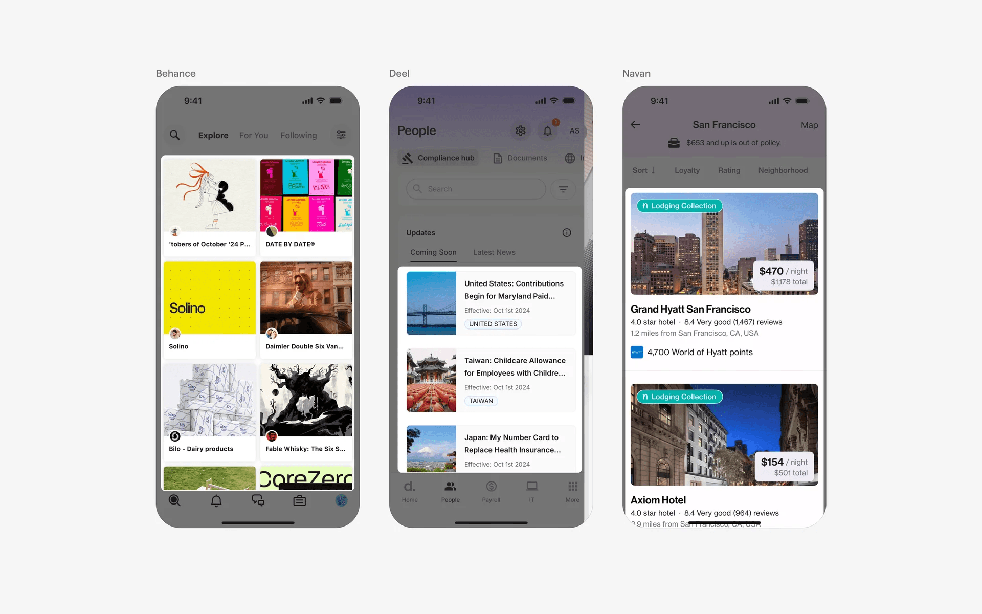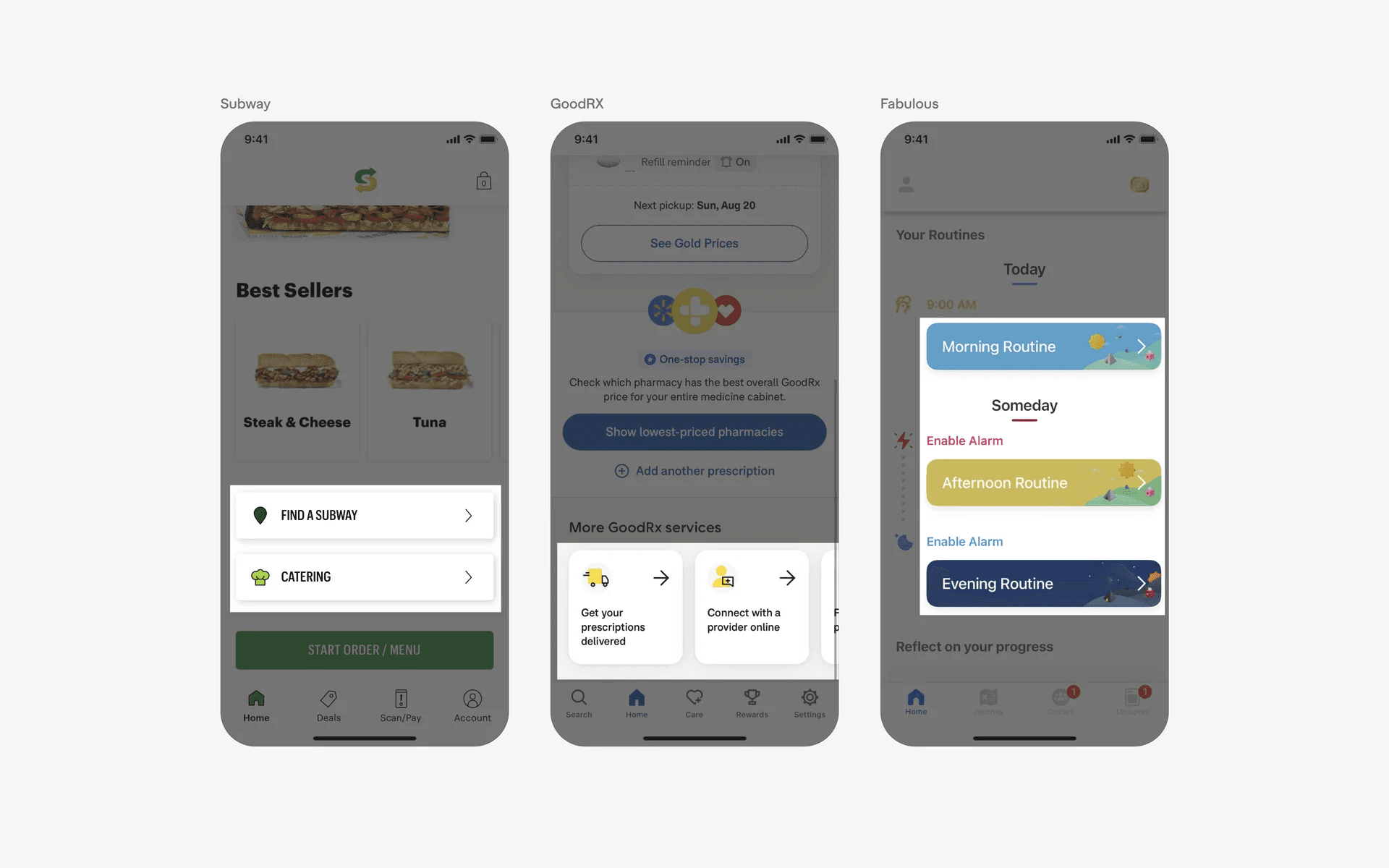 Examples of UI cards as part of navigation