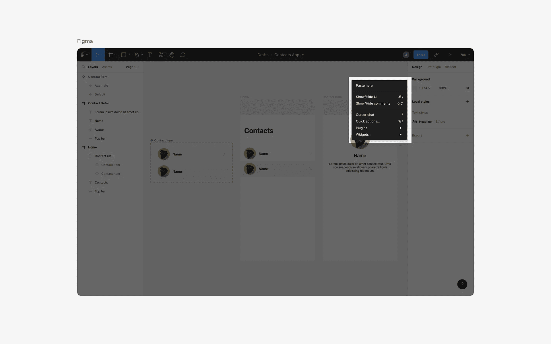 Example of figma's context menu organization