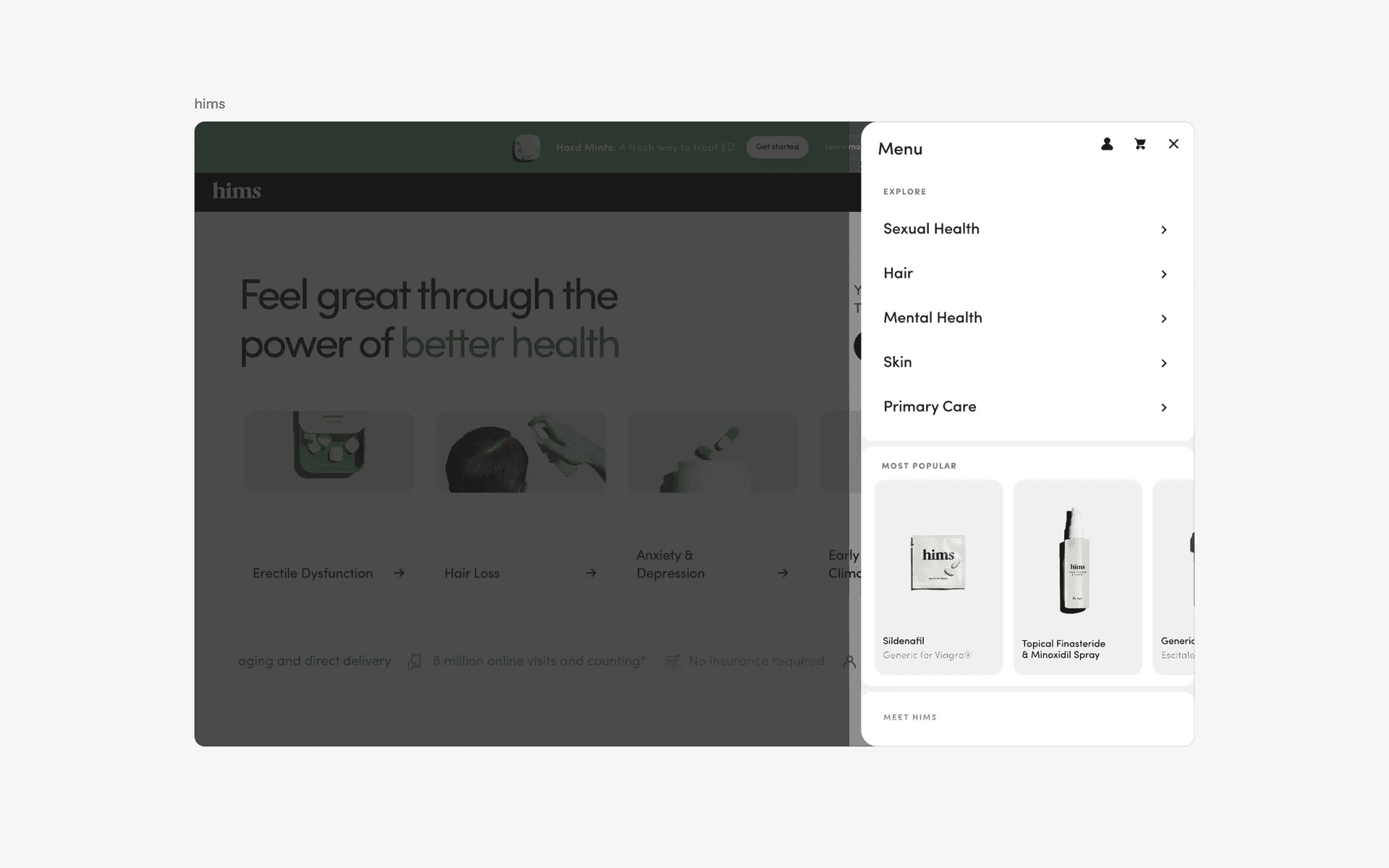 Navigation Menu displays the primary navigation links in a drawer-styled overlay. It is a fly-out multi-column menu from the top navigation bar.