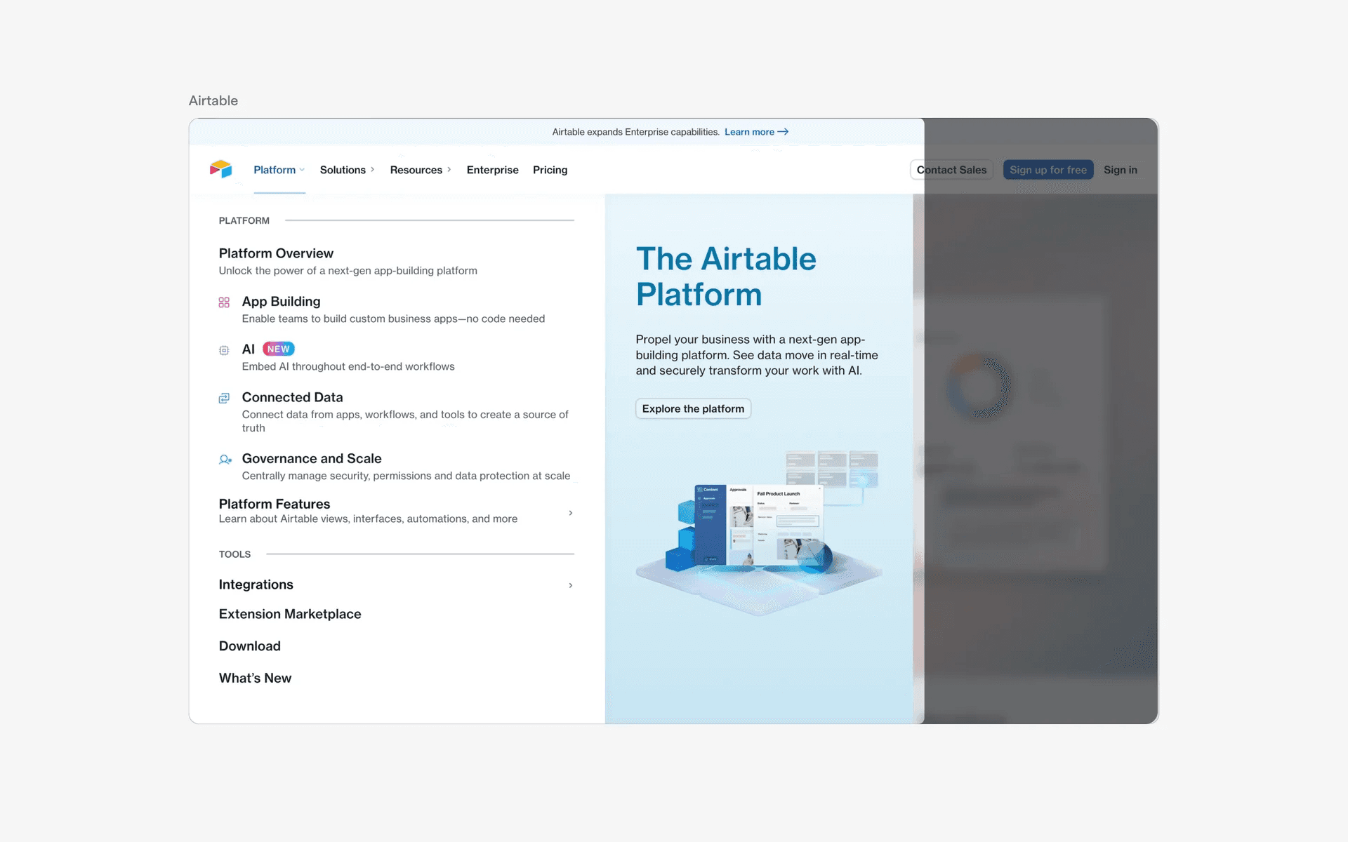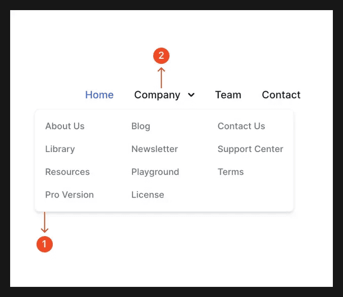 The most common type of navigation menus are dropdown menus from the marketing website's top Navigation Bar. They are triggered when the user hovers over a text link in the navigation bar.