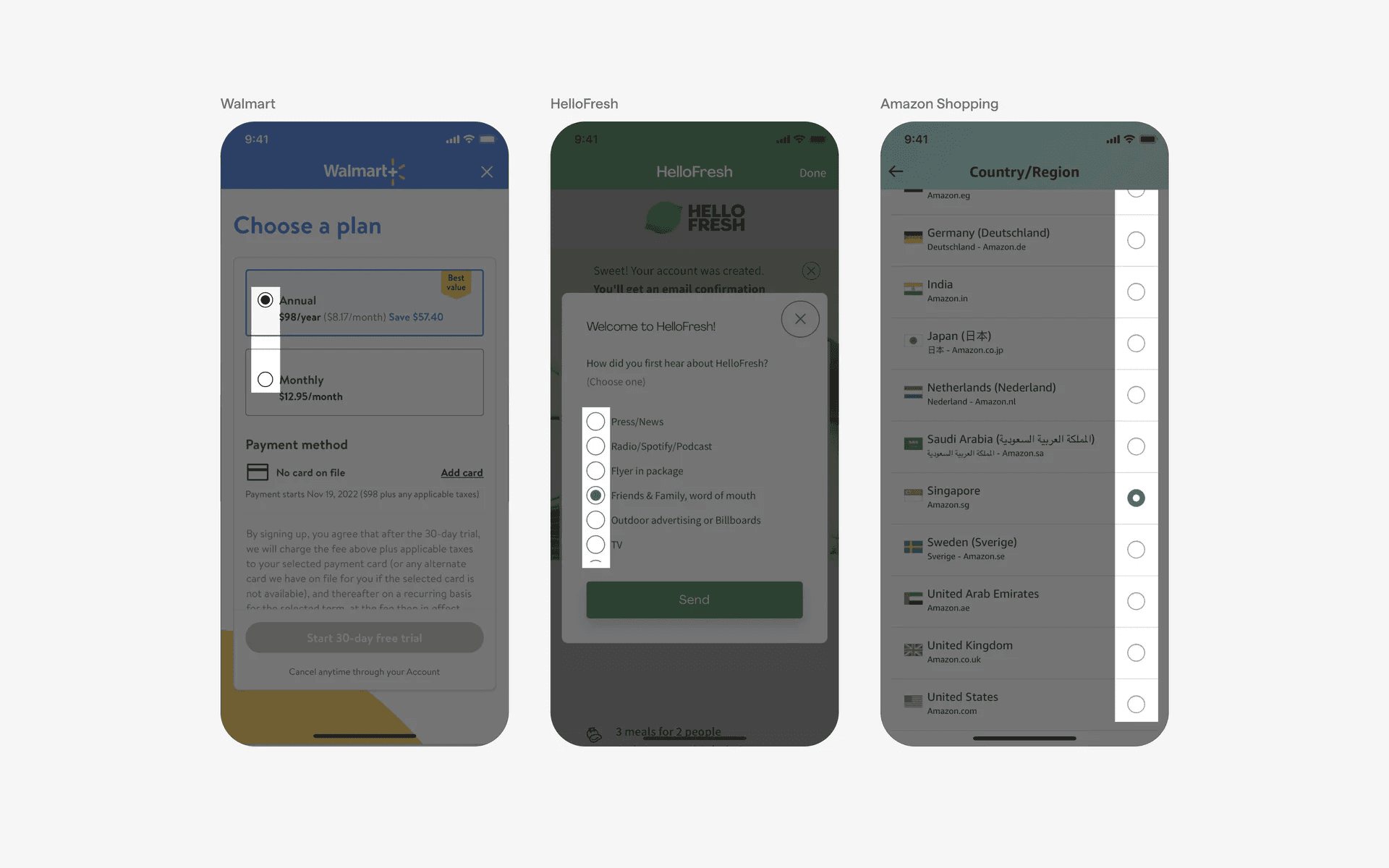 We studied over 1,800+ radio button UI components on Mobbin, from real-world examples and found the following variants.