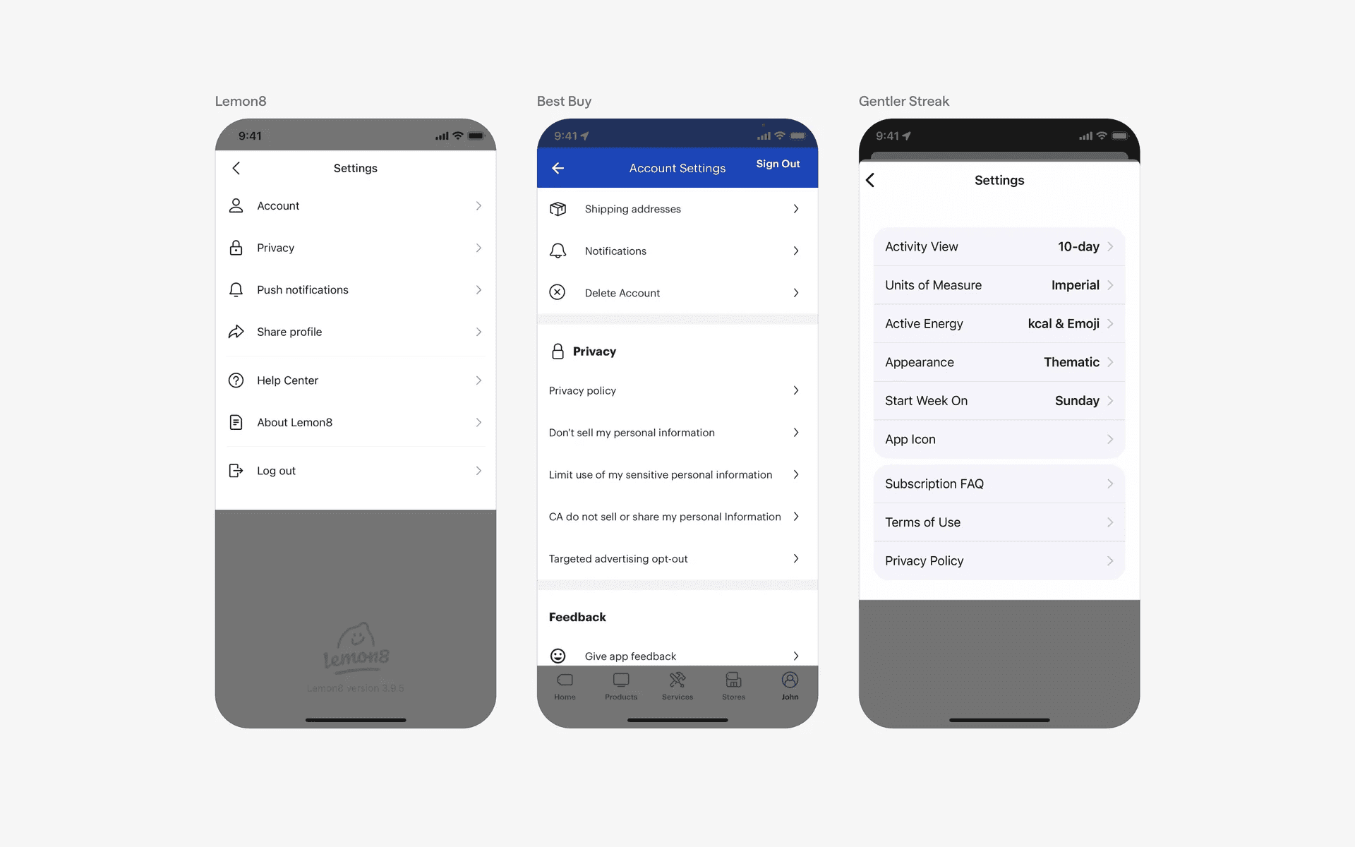 Examples of stacked lists in settings & preferences