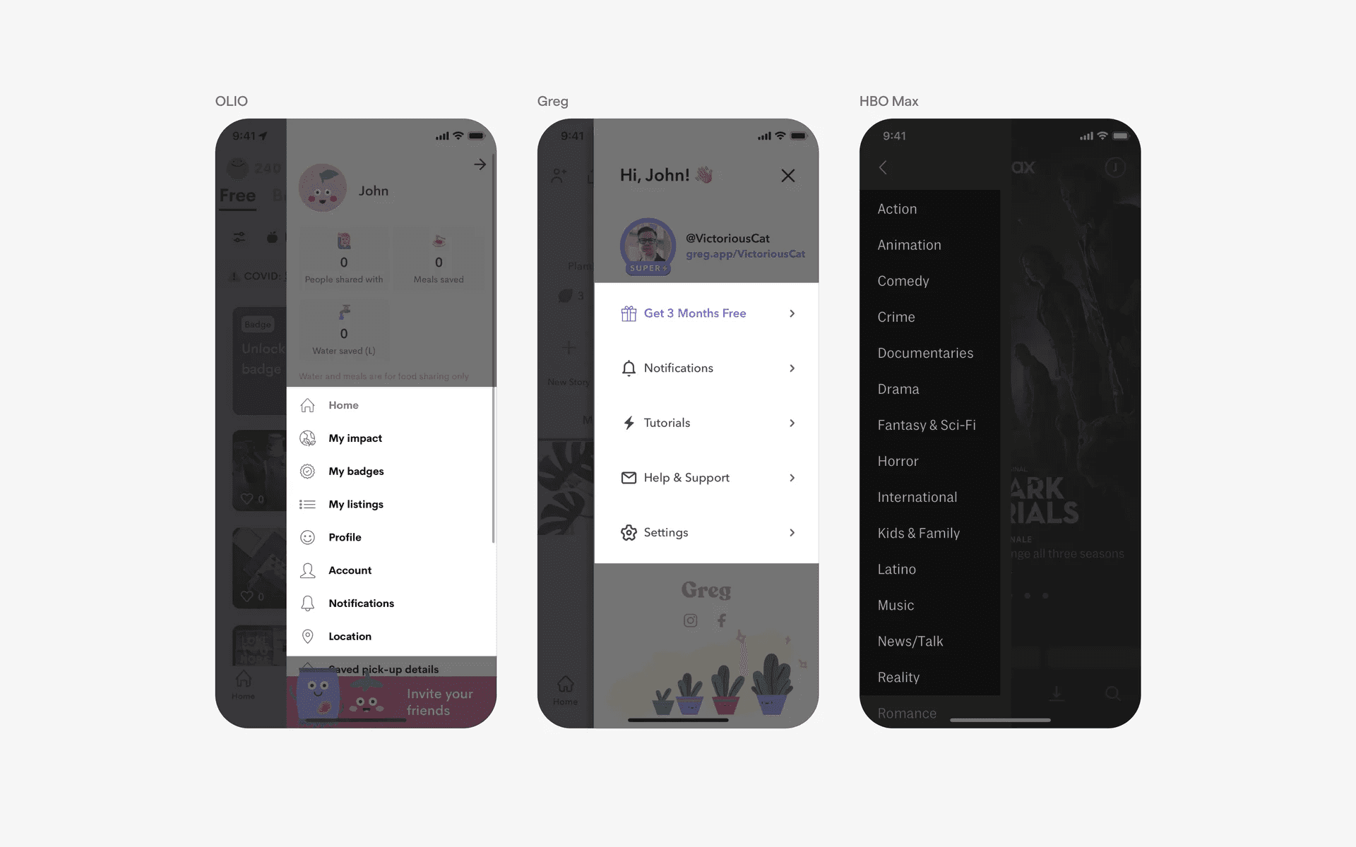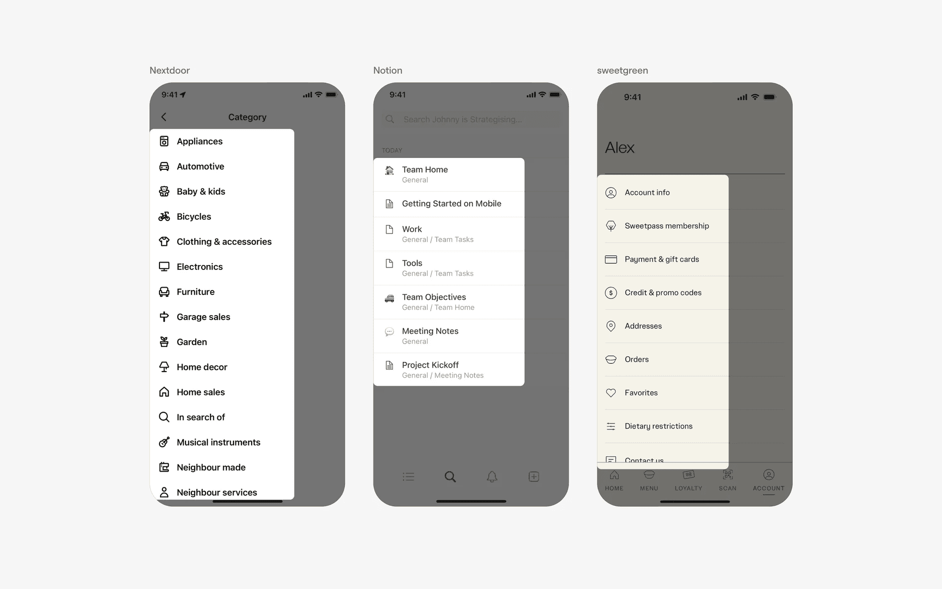 Examples of stacked lists in navigation menus