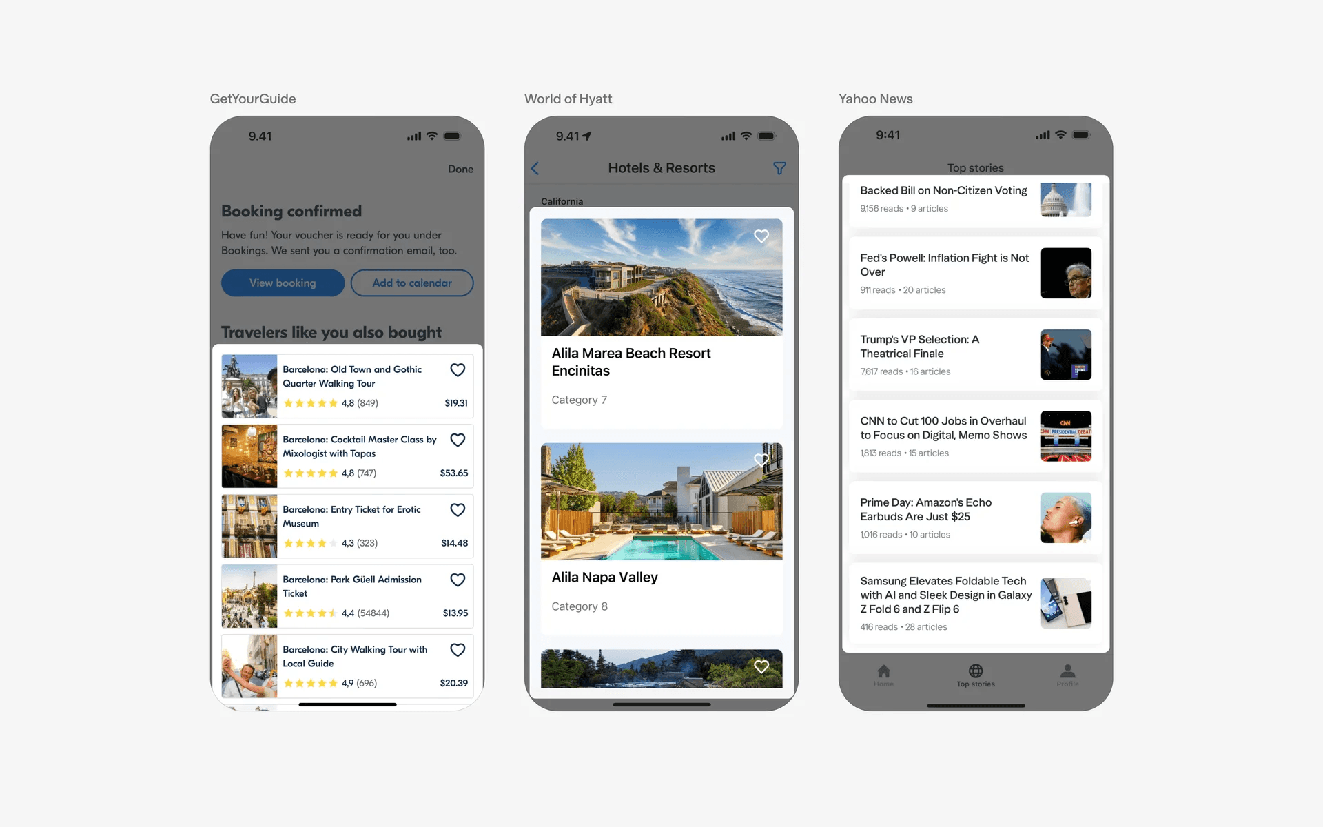Examples of card based stacked lists