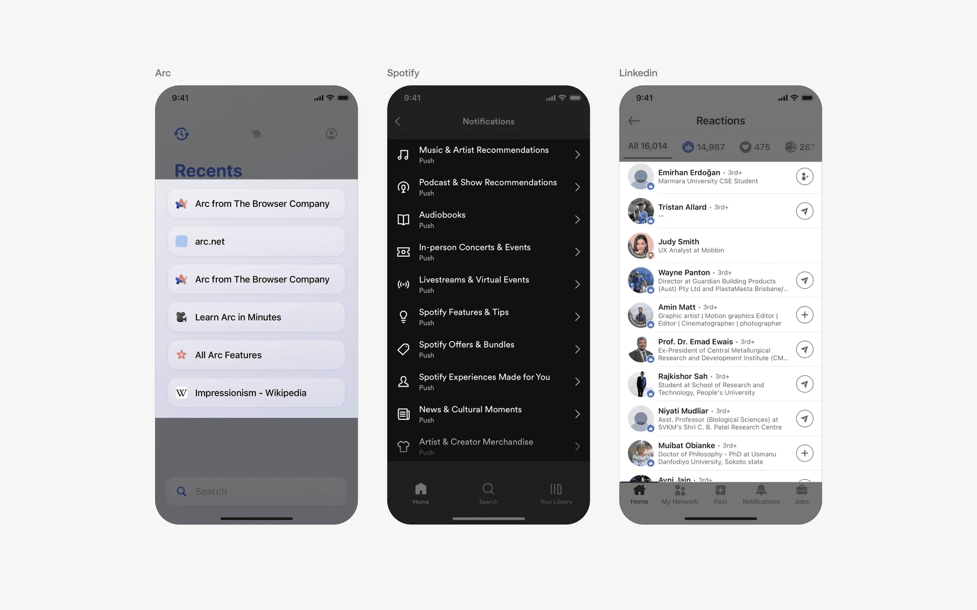 Examples of table UI