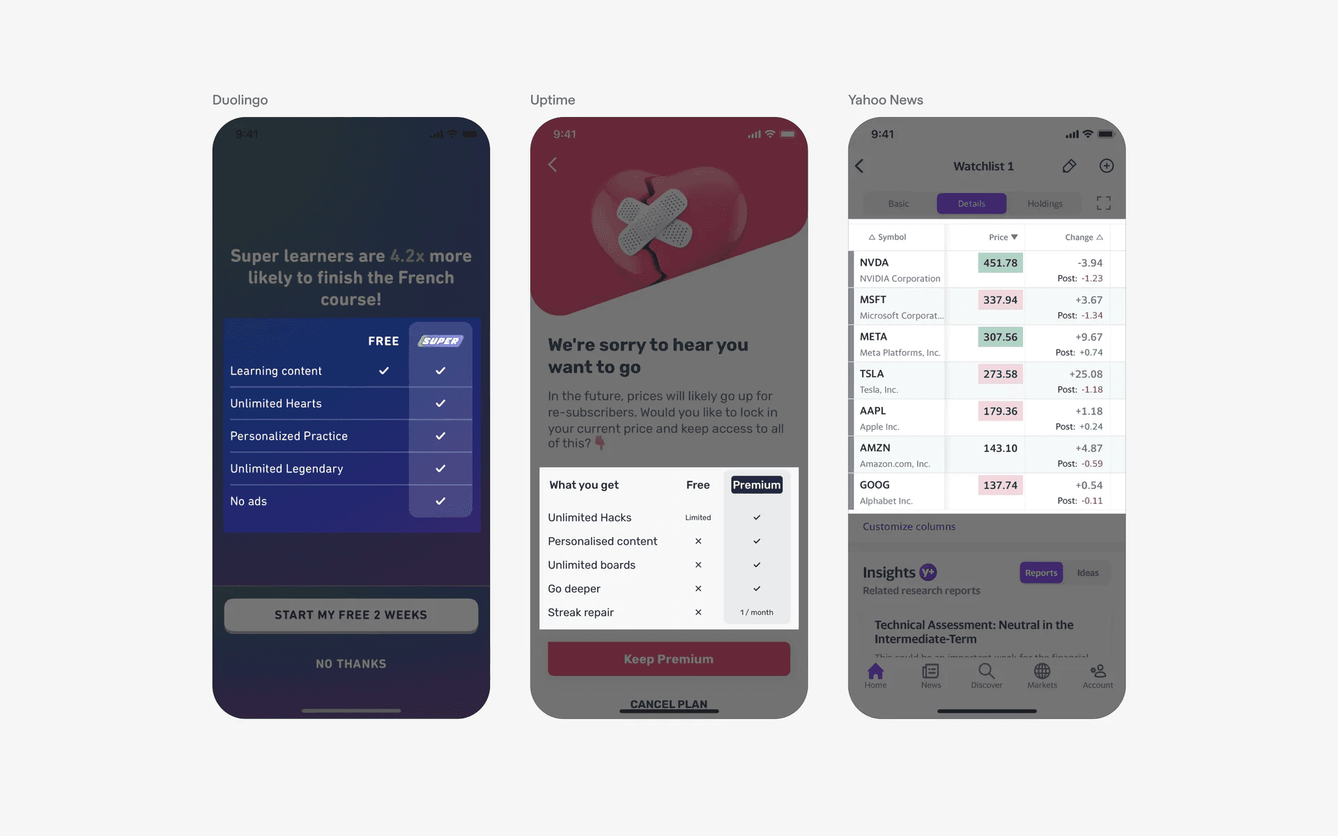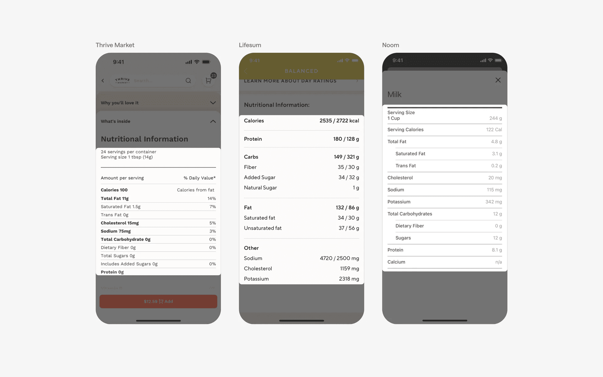 The table UI design is also common in nutritional apps. These tables are often static, and look similar to what you'd expect to find in an actual food packaging.