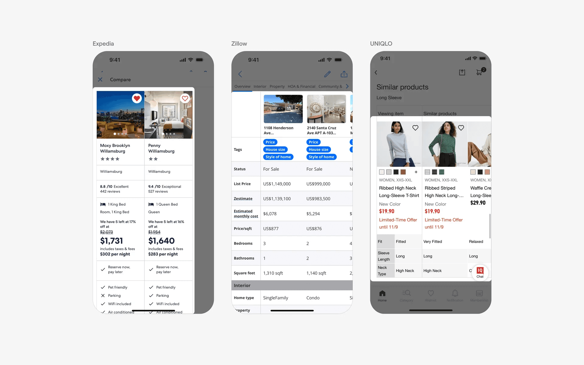 Alternatively, some apps have chosen to use image thumbnails as column headers instead. This might enable users to better compare products against each other.