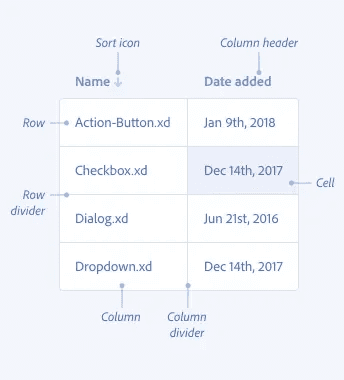 Anatomy of table UI