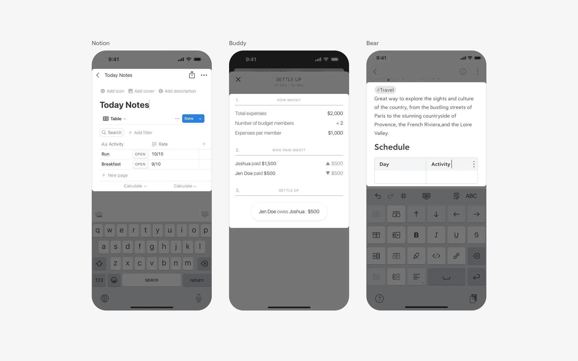 It is common to see editable table UI design examples in note taking apps like Evernote or Notion. Designing tables is not an easy task on mobile devices since it might compromise readability or usability on small screens.